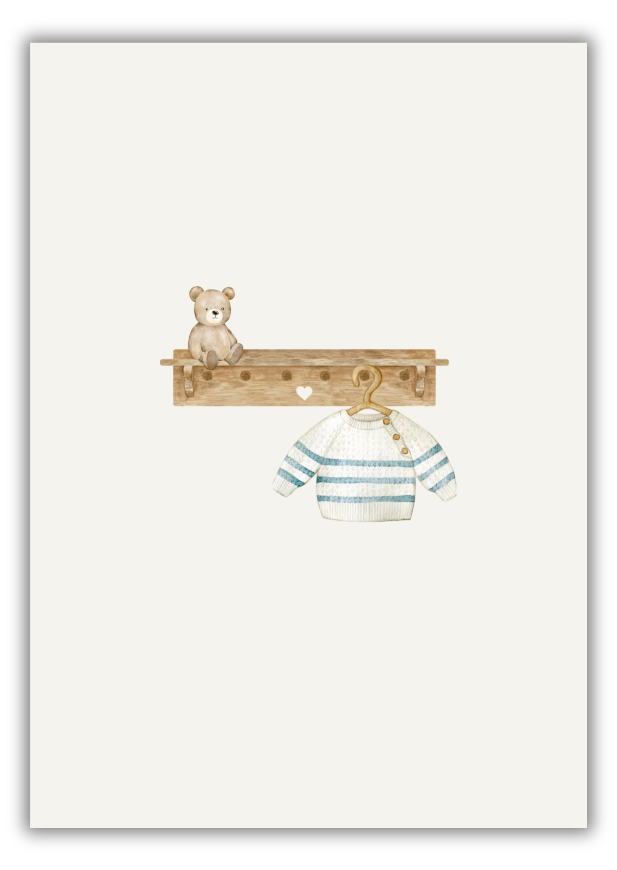 Geboortewenskaart met een stijlvol jongens kapstokje en een schattig jongens truitje.