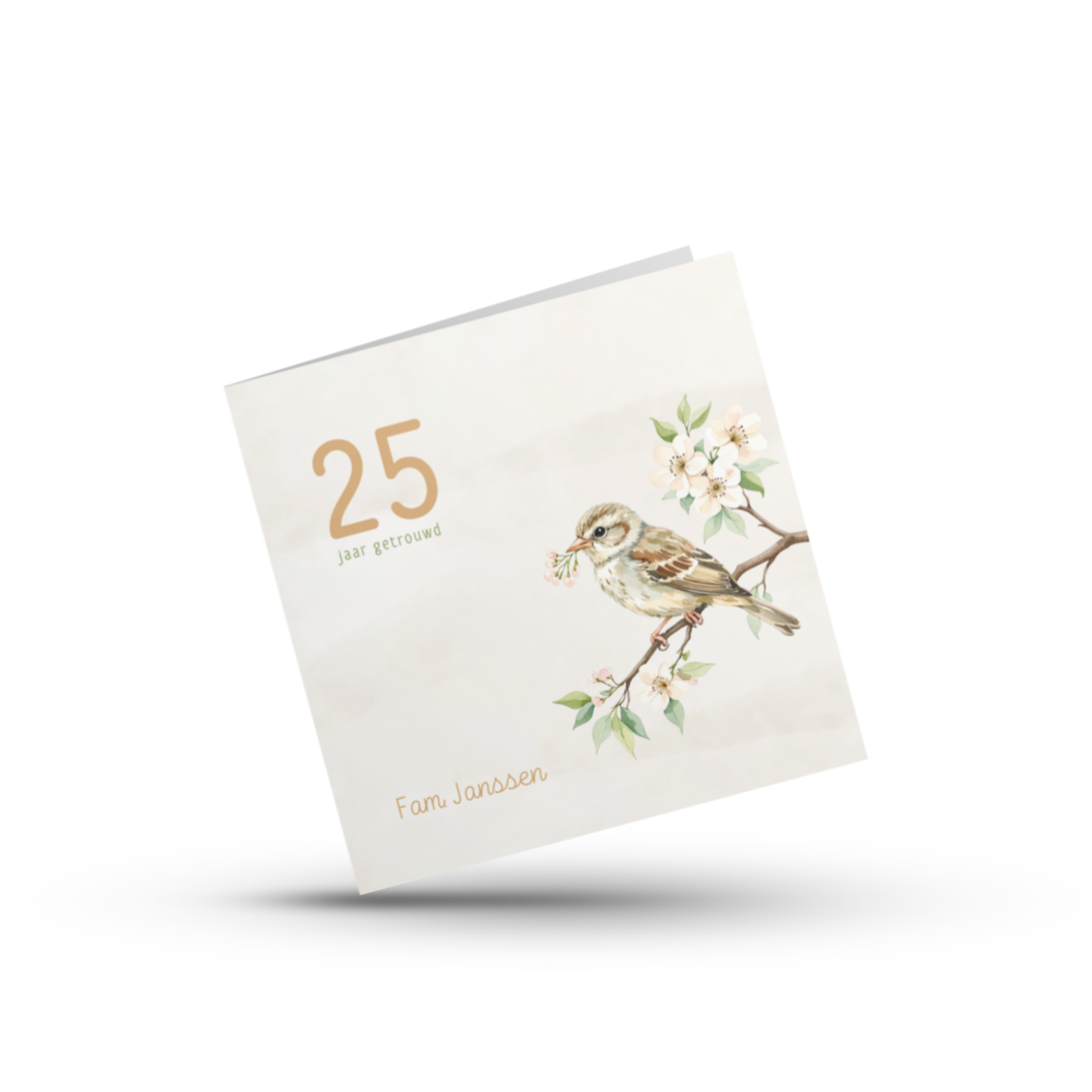 Vier een bijzondere mijlpaal met deze elegante trouwkaart voor een 25‑jarig huwelijk.